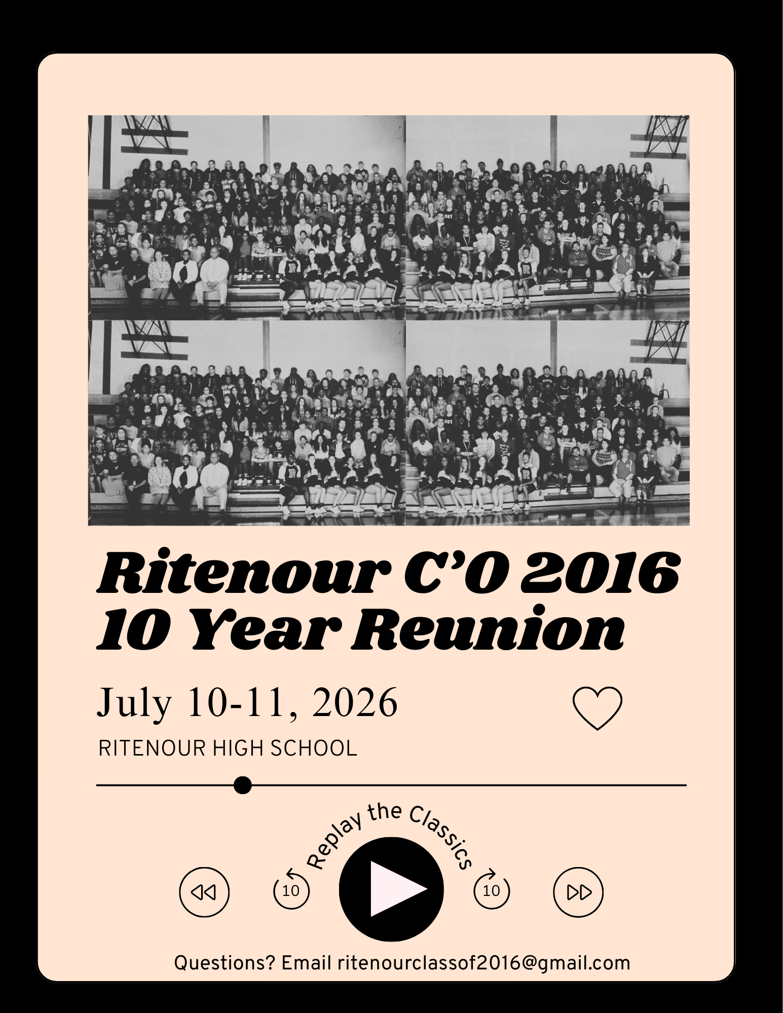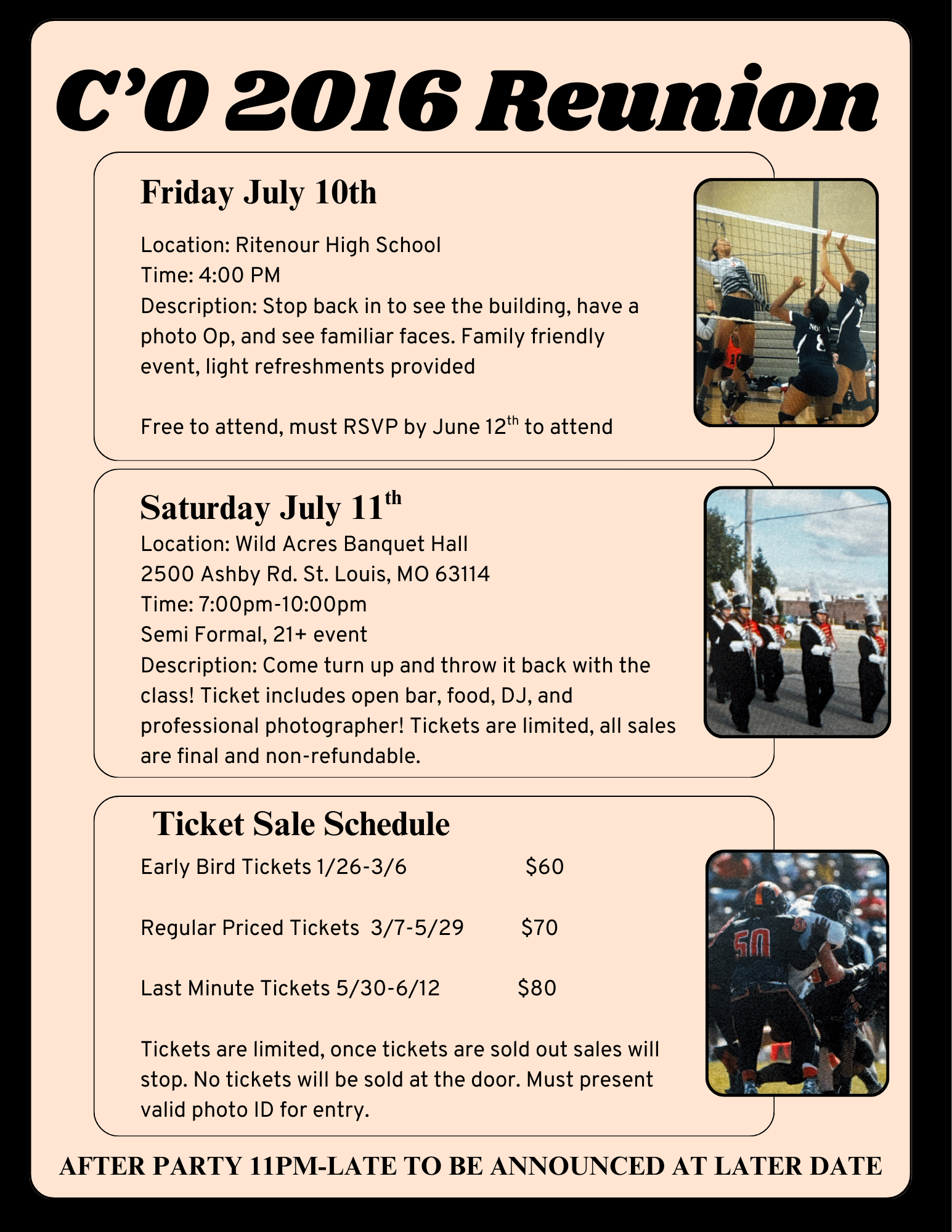 ritenour class of 2016 reunion schedule and events Buy Tickets now EVENT DETAILS BELOW! LEARN HOW TO DONATE!